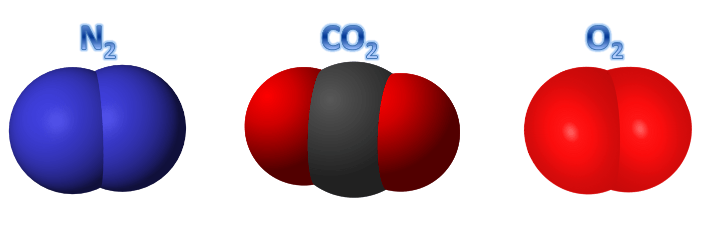 The atmosphere in such packages mainly consists of regulated amounts of Nitrogen (N2), Oxygen (O2) and Carbon Dioxide (CO2).